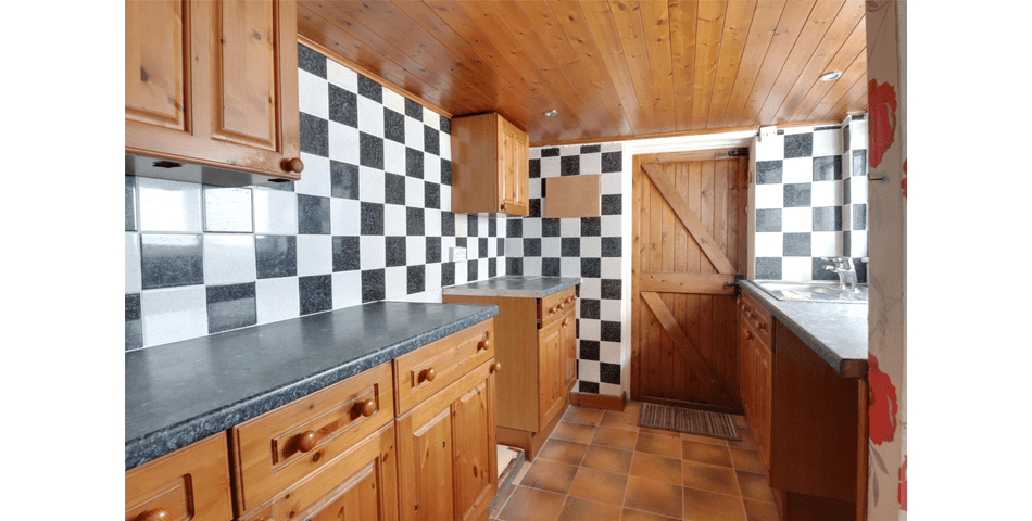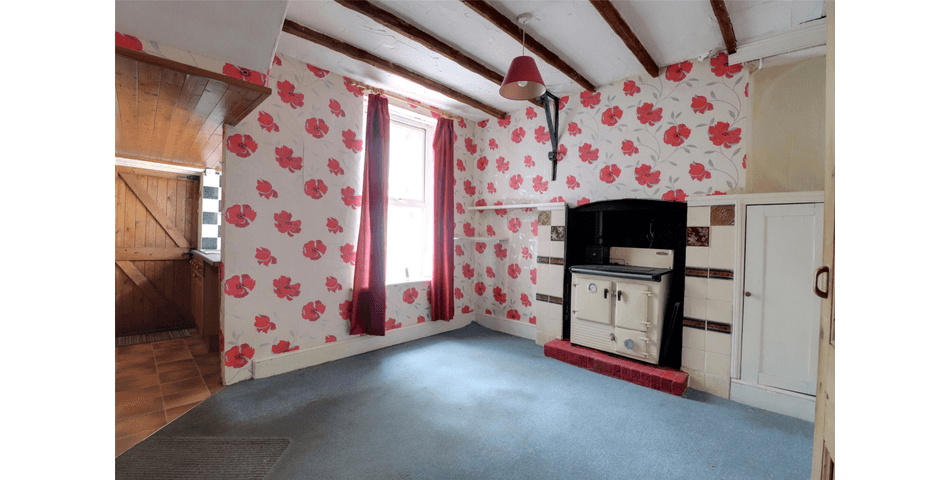 The ground floor living accommodation comprises of an entrance hallway, living room, dining room and kitchen. The living room is a good size room with ample space for a sizeable furniture and the focal point being the open fire. The dining room is also a good size and has ample space for a dining table and chairs and flows nicely in to the kitchen. There is a Rayburn in the dining room but it is no longer functionable, when the central heating was put in it was disconnected. The kitchen is fully equipped with a range of base and eye level units and has access leading out to the rear courtyard.